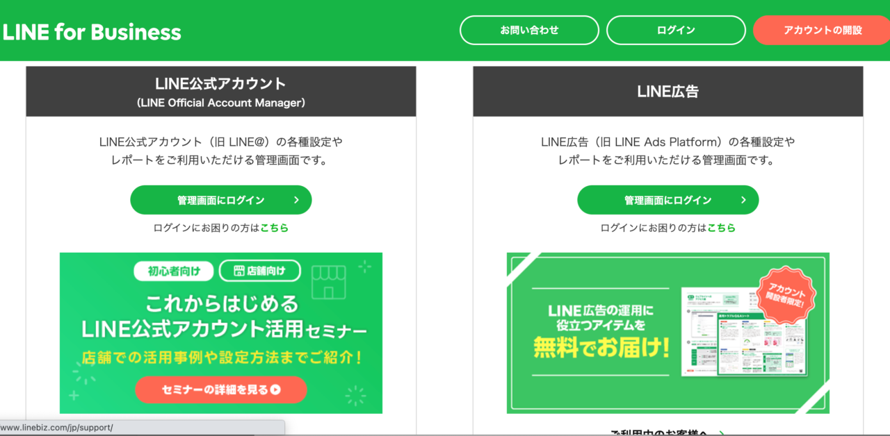 LINE公式アカウント(LINE Official Account Manager)のログインをクリックする