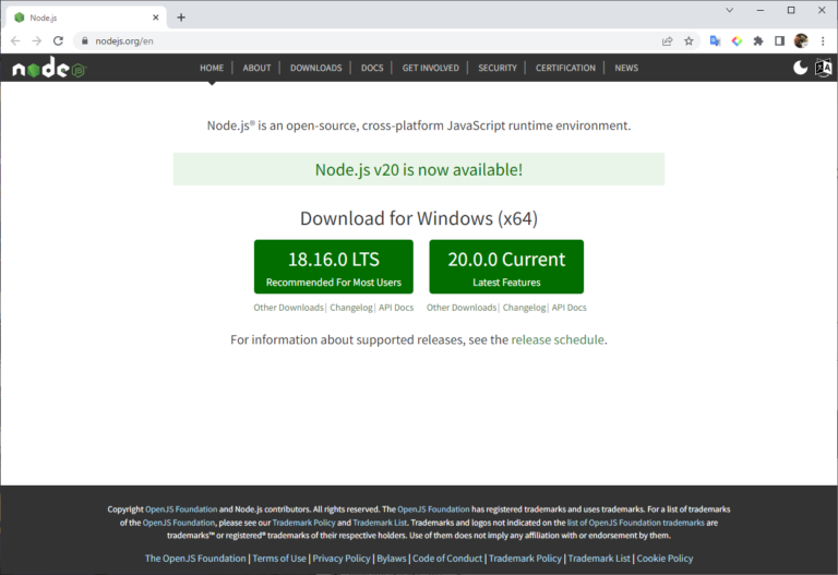 公式サイト https://nodejs.org/en これで完了です! バージョンが表示されることを確認する。 Hello Word!