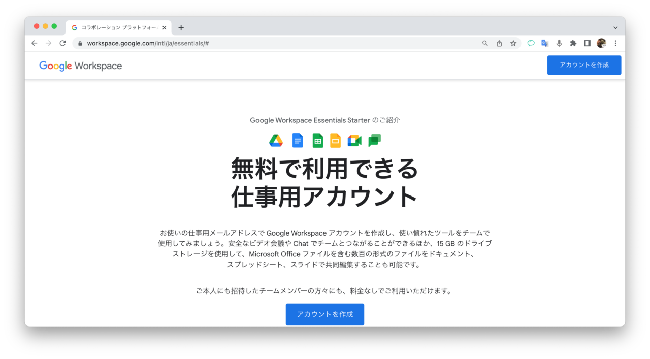 ちなみにメンバーを増やしたい、Gmailを使いたい、ドライブ共有したいなどの時は、有料版へのアップグレードできます。https://workspace.google.co.jp/intl/ja/pricing.html